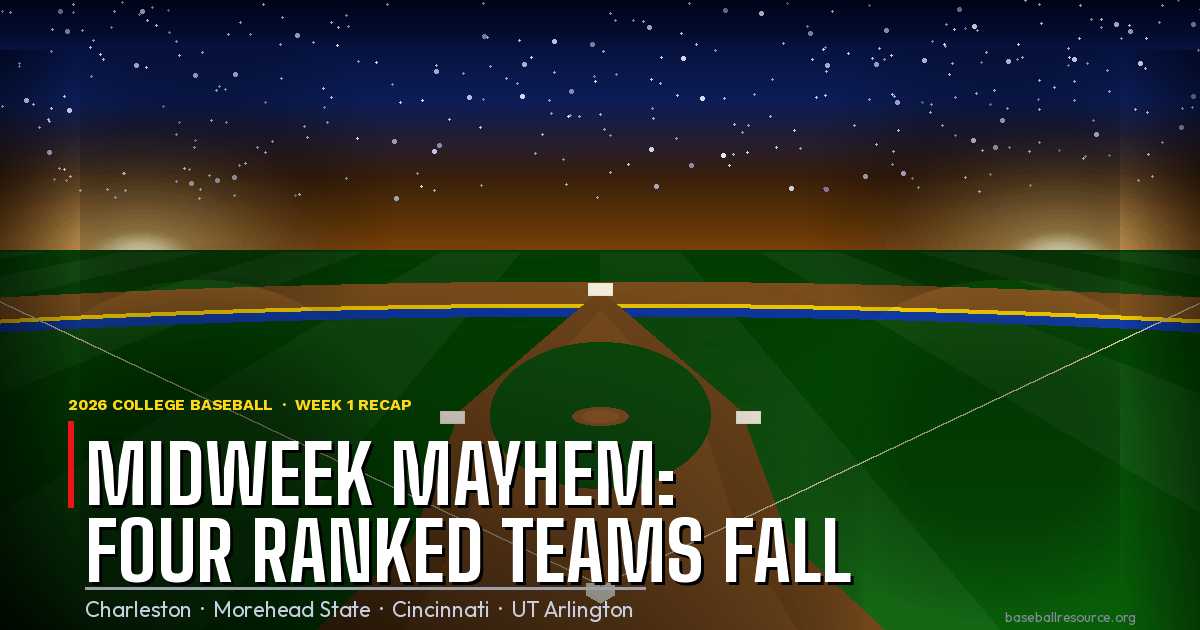 College baseball is back, and it wasted absolutely no time reminding everyone why the sport is so unpredictable. Week 1 of the 2026 season delivered everything fans could ask for: ranked programs getting knocked off at home, unranked underdogs playing with nothing to lose, and the kind of chaos that only the college game can produce. Tuesday’s midweek slate, featuring 18 teams from D1Baseball’s top 25, became an instant classic — and a sobering wake-up call for several programs with championship aspirations.